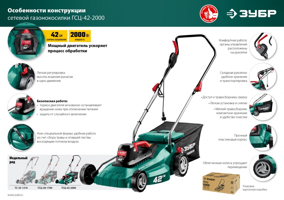- Мощный двигатель ускоряет процесс обработки, а оптимальная ширина кошения снижает нагрузку, что увеличивает ресурс изделия