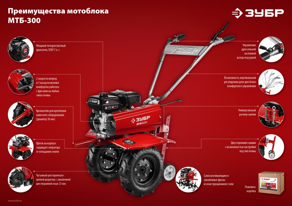 - Конструкция мотоблока позволяет использовать его с различными навесными оборудованием