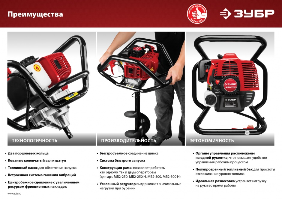 Мощный инструмент для бурения отверстий в мягких, твердых, мерзлых грунтах, а также во льду. Мощный 2-х тактный двигатель и универсальная конструкция рамы позволяют быстро и эффективно произвести необходимые работы по бурению. Конструкция рамы мотобура позволяет работать как одному, так и двум операторам, что повышает эффективность бурения, кроме того обеспечивает дополнительную сохранность двигателя при работе и транспортировке.