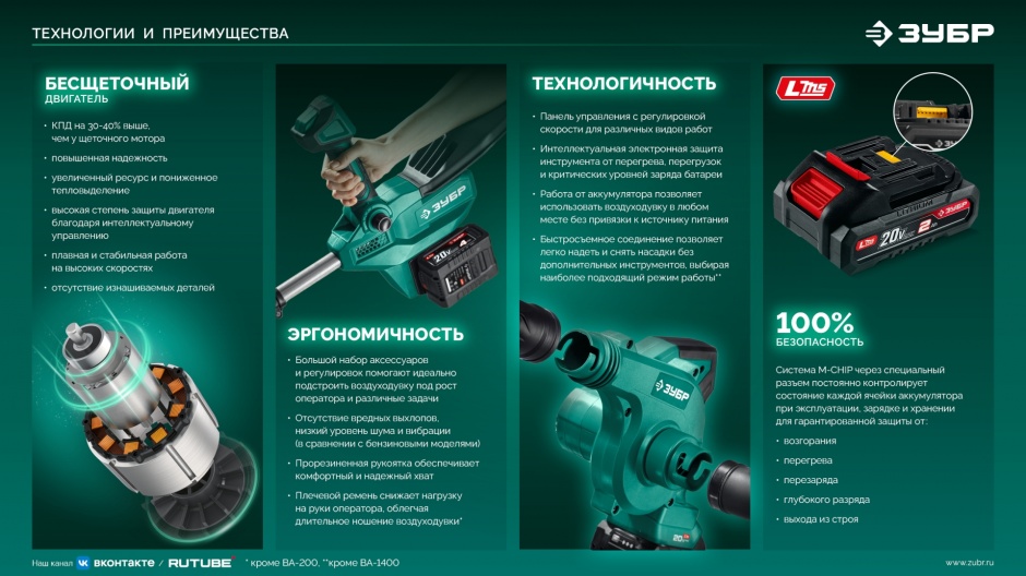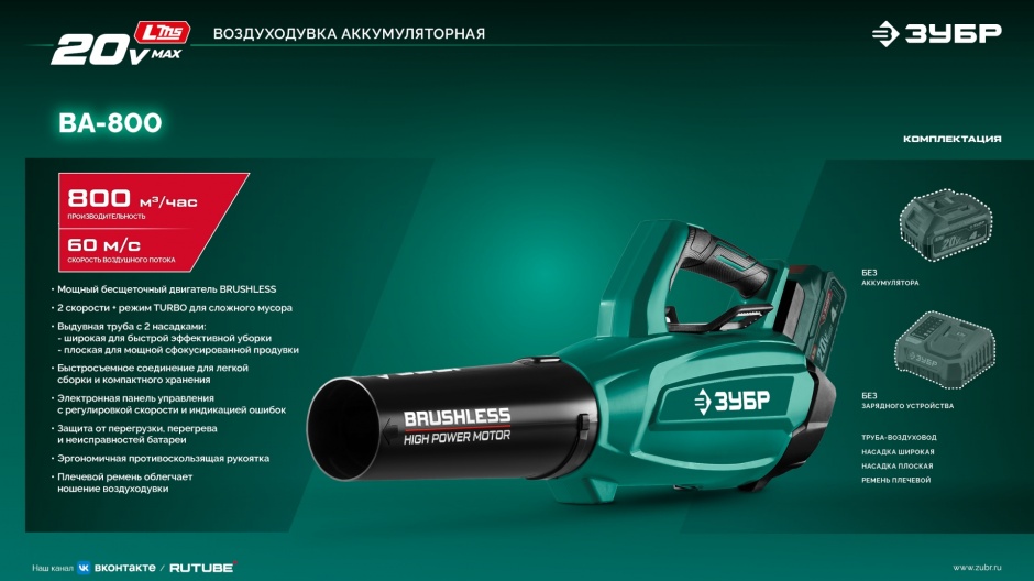 Мощная аккумуляторная воздуходувка легко справляется с уборкой территории от листьев и мелкого мусора. Надежный и экономичный BRUSHLESS двигатель, производительная турбина и высокоскоростной TURBO-режим помогают эффективной и быстрой работе. Дополнительная узкая насадка помогает создать при необходимости более сильный и направленный воздушный поток.