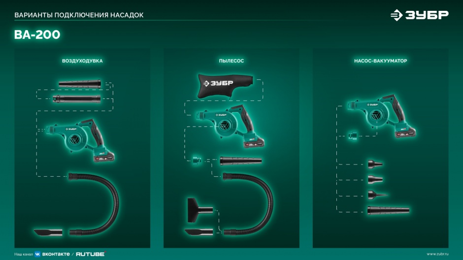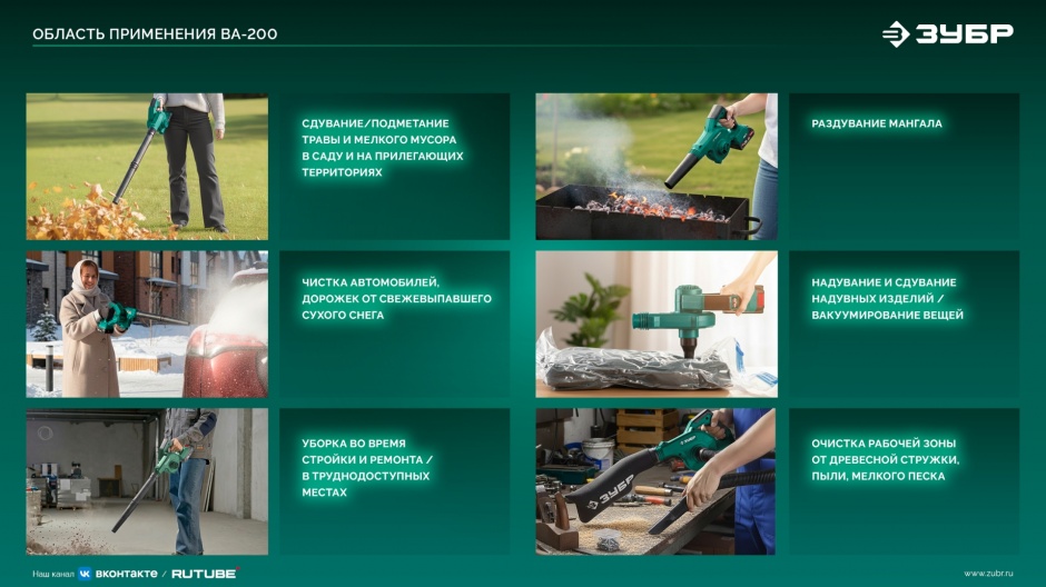 Для уборки листьев, мелкого мусора и пыли, накачивания надувных изделий