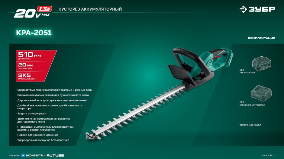 - Длинный нож и большой диаметр реза позволяют работать с различными видами кустарников