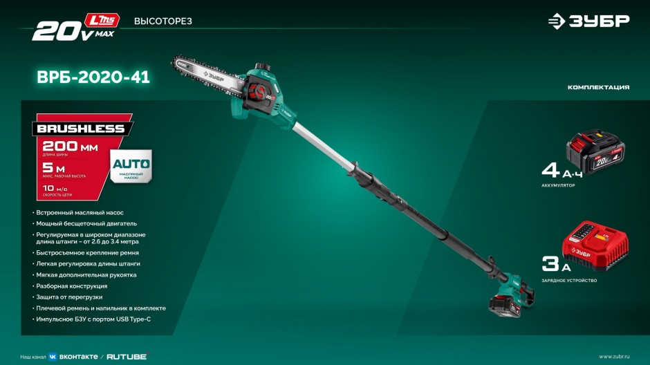 Высоторез аккумуляторный ЗУБР — надежный инструмент для обрезки сучьев и веток, который станет незаменимым помощником в уходе за вашими деревьями и кустами.