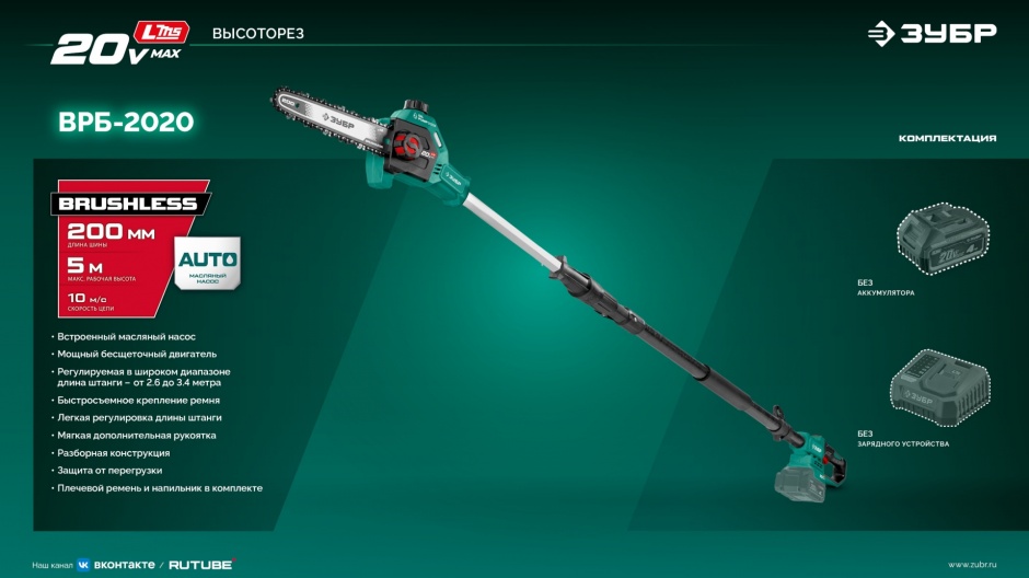 Высоторез аккумуляторный ЗУБР — надежный инструмент для обрезки сучьев и веток, который станет незаменимым помощником в уходе за вашими деревьями и кустами.