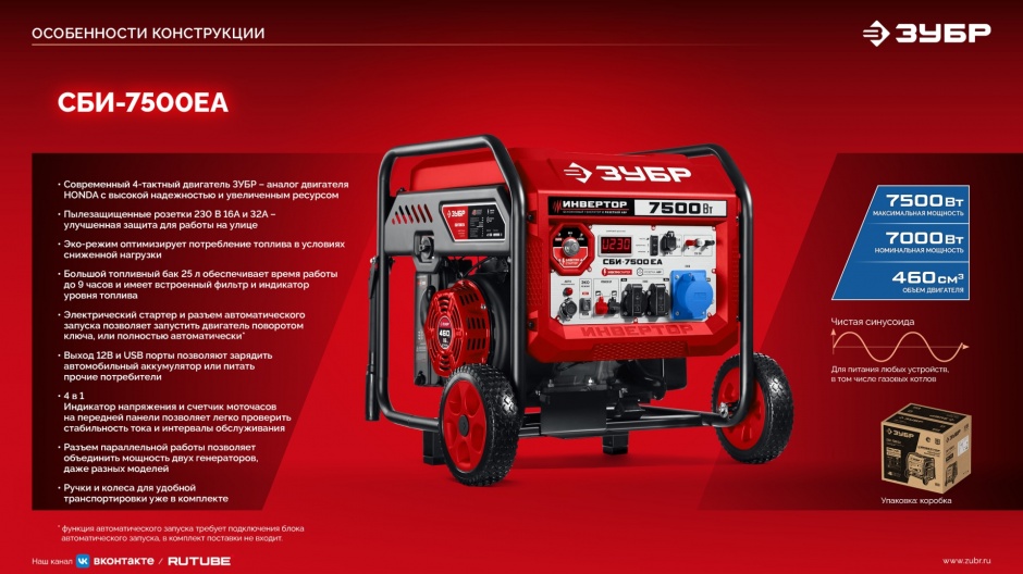- Современный 4-тактный двигатель ЗУБР - аналог HONDA