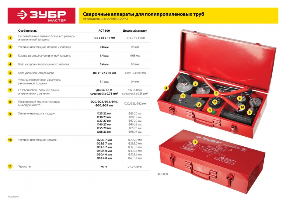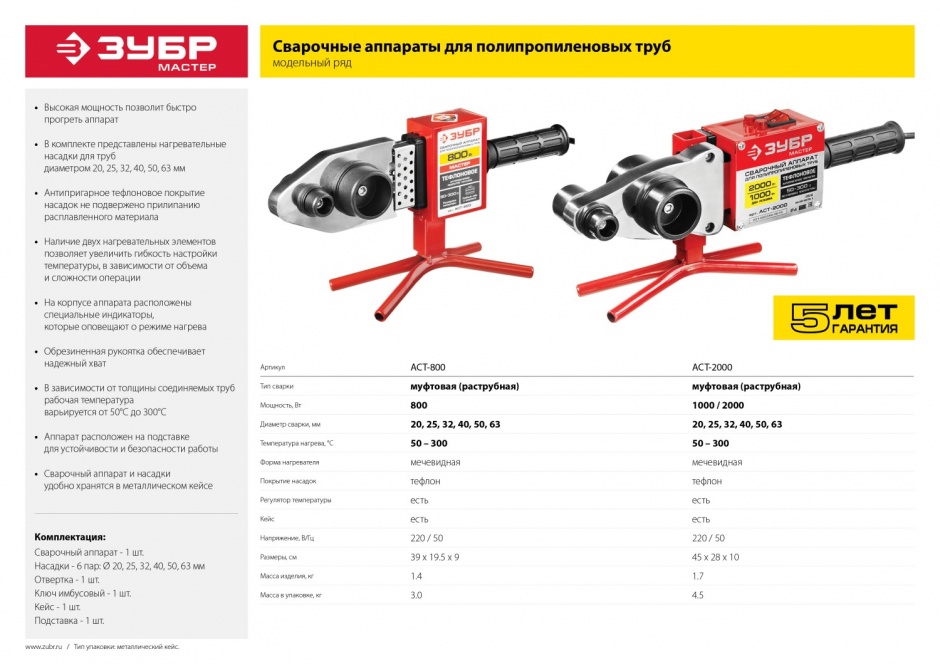 Сварочный аппарат для полипропиленовых труб ЗУБР используется в сфере сантехнических работ для быстрого и легкого образования надежного соединения трубных систем. Аппарат подходит как для опытных мастеров, так и для новичков, не требует специального оборудования для проведения ручной сварки разных видов полипропиленовых труб и фитингов