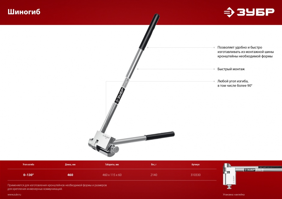Шиногиб позволяет удобно и быстро изготавливать из монтажной шины кронштейны необходимой формы для крепления инженерных коммуникаций. Крепление с помощью монтажной шины упрощает и ускоряет монтаж, позволяя избежать сверления большого количества отверстий.