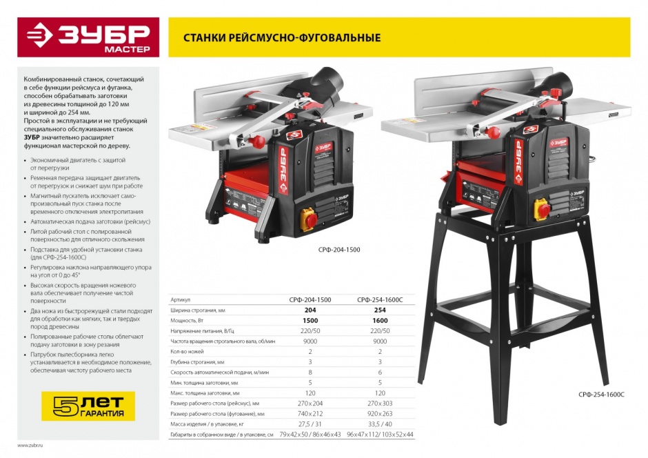Комбинированный станок предназначен для обработки поверхности деревянных изделий строганием по плоскости (фугование), а также строганием в заданный размер (рейсмусование) с простым переходом от одной операции к другой. Простой в эксплуатации и не требующий специального обслуживания, станок ЗУБР значительно расширяет функционал любой мастерской по дереву.
