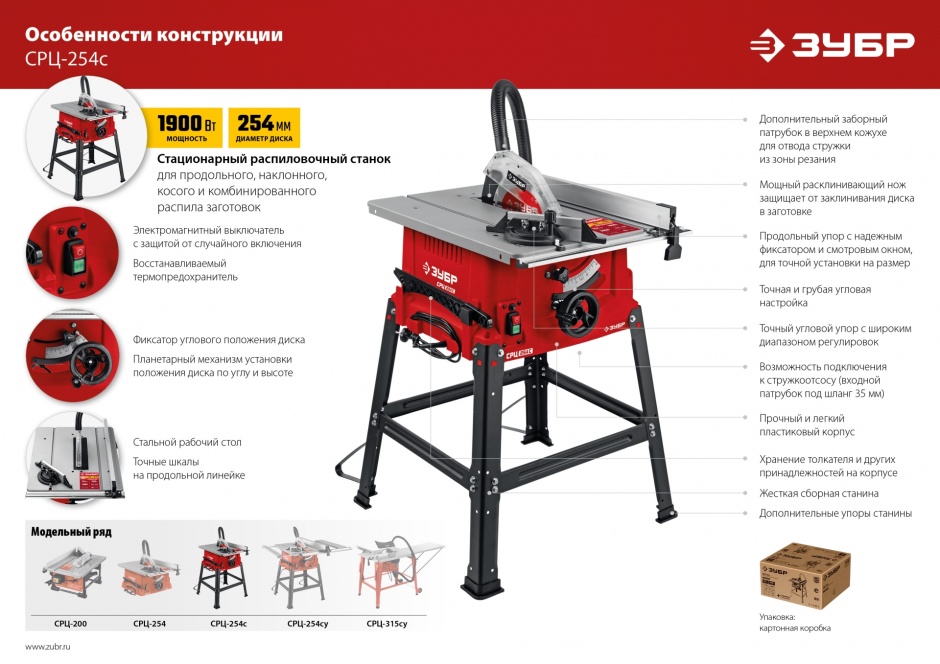 Стационарный распиловочный станок ЗУБР СРЦ-254с : Идеальное сочетание мощности, диаметра диска и глубины реза