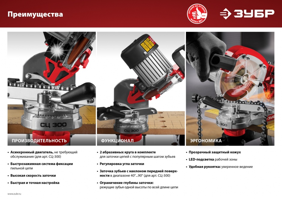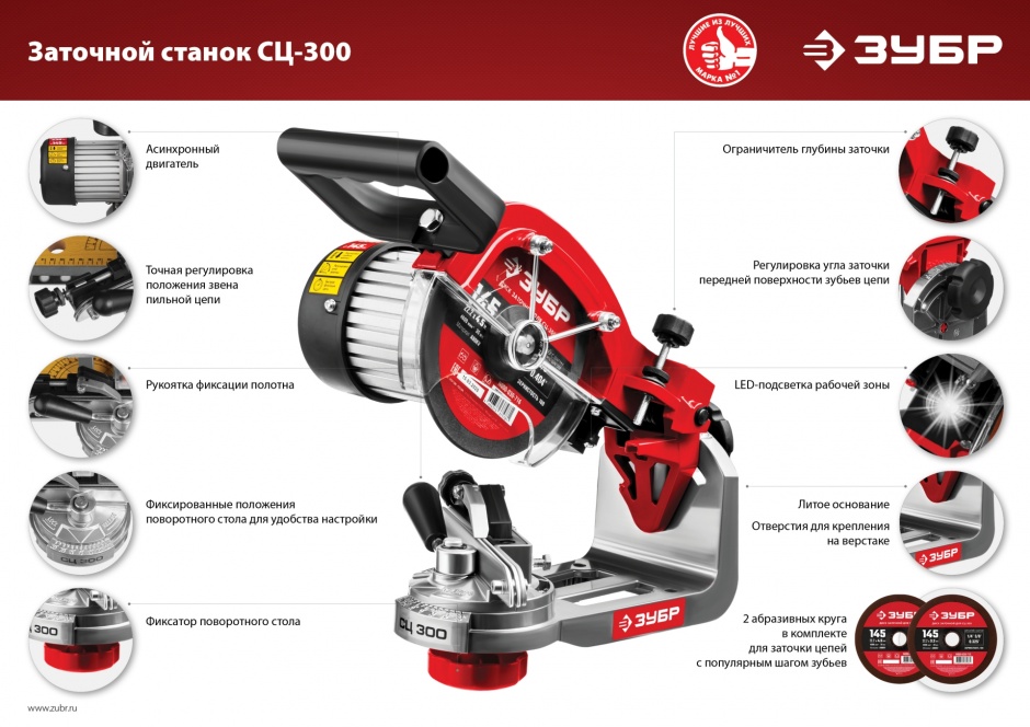 Заточной станок СЦ-300 для пильных цепей обладает мощностью и надежностью позволяющими поддерживать остроту пильной цепи быстро и с комфортом. Точные настройки станка позволяет добиться отличных результатов почти под любые нужды.