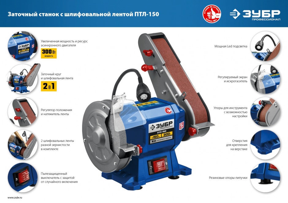 Станок заточной ЗУБР ПТЛ-150 – незаменимый инструмент для гаража, мастерской, используемый для заточки режущего инструмента и шлифовки заготовок. Простота конструкции, высокая надежность, компактный размер, два шлифовальных материала с разной зернистостью – все что нужно для настоящего мастера, ценящего качество и рассчитывающего на долгий срок службы.