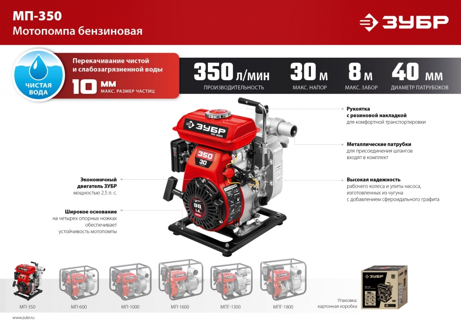 Небольшая, легкая, неприхотливая в использовании мотопомпа для чистой воды. Идеальный помощник в оперативном решении сезонных хозяйственных задач на приусадебном участке
