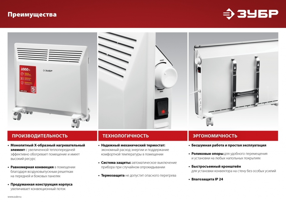 Электрический конвектор ЗУБР мощностью 2000 Вт - подойдет для обогрева любых домашних и офисных помещений, включая ванные комнаты, площадью до 25 м2. Сделано в России