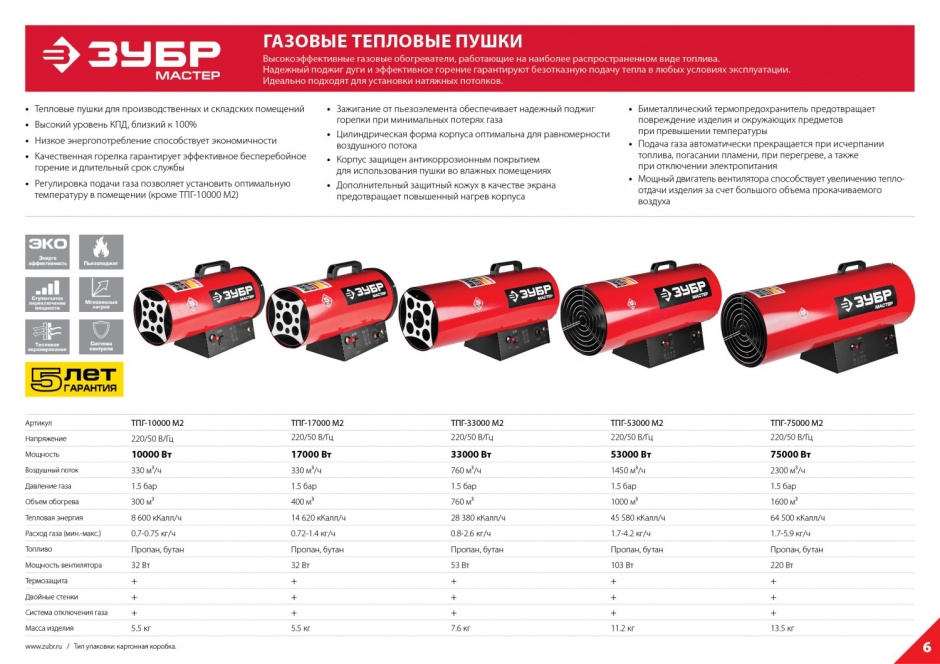 Высокоэффективный газовый обогреватель, работающий на наиболее распространенном виде топлива. Оптимально подходит для использования на открытых и полузакрытых площадках для просушки и обогрева, размораживания траншей и аварийного прогрева помещений, а так же для монтажа натяжных потолков. Надежный поджиг дуги и эффективное горение гарантируют безотказную подачу тепла в любых условиях эксплуатации. ЗУБР - тепло всегда и везде